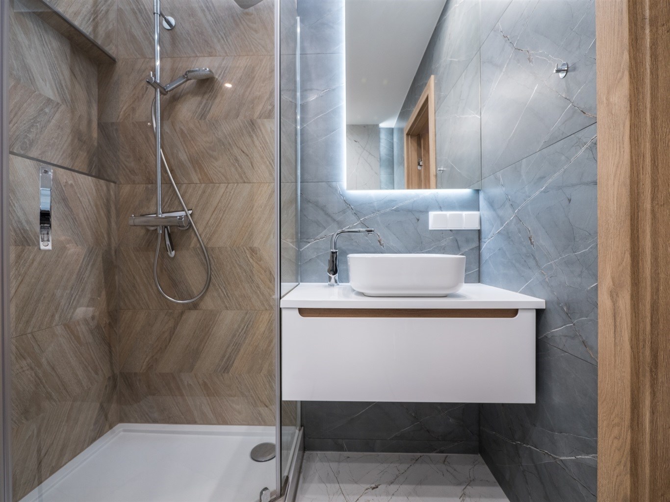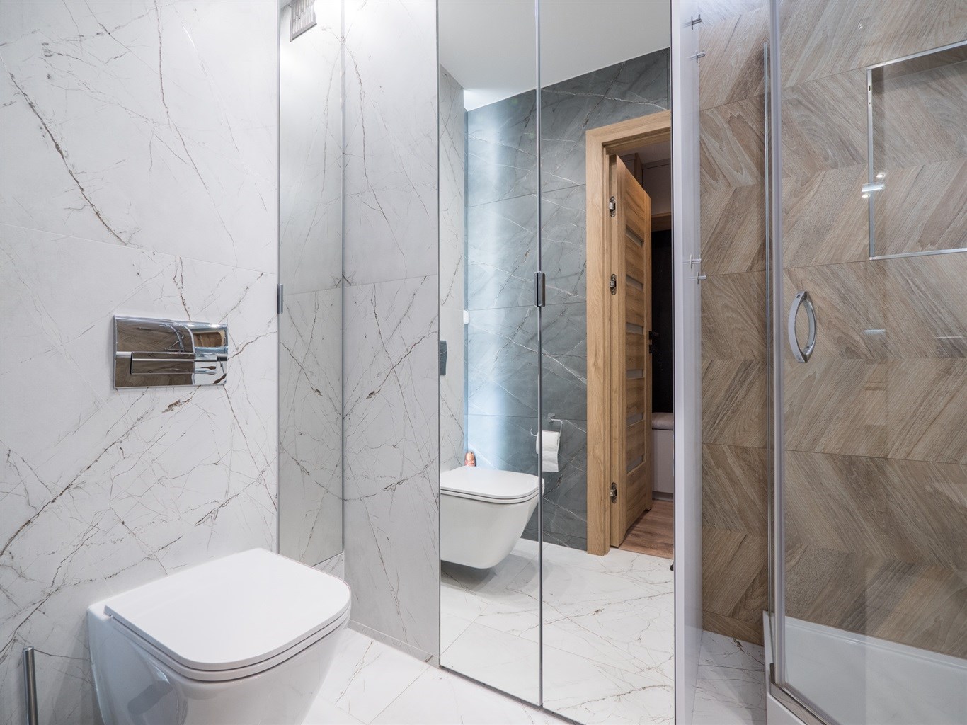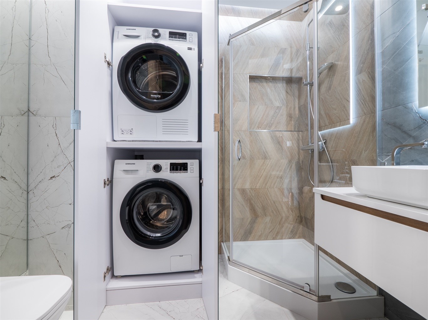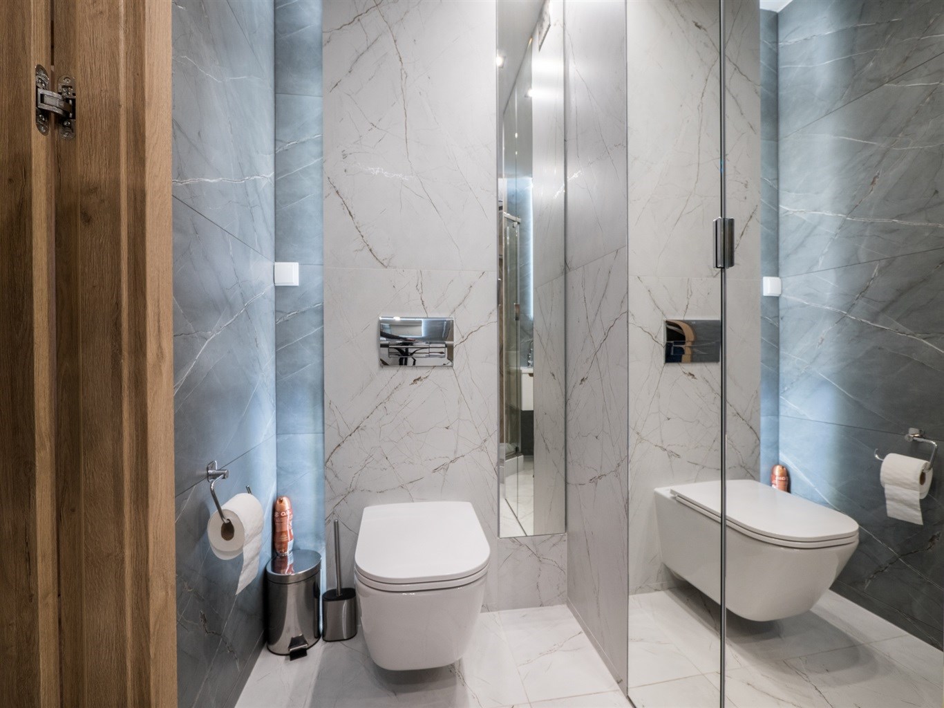 W łazience wysokiej klasy glazura, kabina prysznicowa, pralka oraz suszarka. Na podłogach w pokojach panele o wysokiej klasie ścieralności. Kuchnia na wymiar wyposażona we wszystkie niezbędne sprzęty AGD (lodówko- zamrażarka, płyta indukcyjna, zlew, zmywarka, piekarnik). W salonie rogówka z funkcją spania. W sypialni łóżko małżeńskie oraz pojemna szafa w zabudowie. W przedpokoju szafa w zabudowie + siedzisko. W salonie klimatyzacja. Zastosowane energooszczędne oświetlenie LED w całym mieszkaniu. Do mieszkania przynależy balkon oraz piwnica. Dodatkowo do bloku przynależy parking ogrodzony tylko dla mieszkańców – jedno miejsce parkingowe w cenie najmu