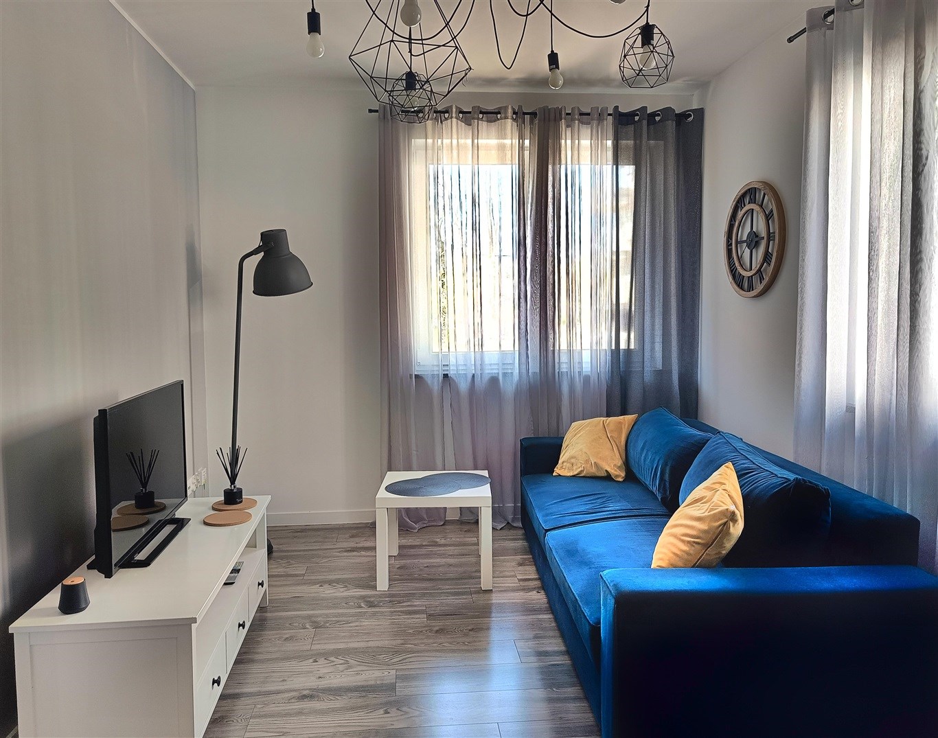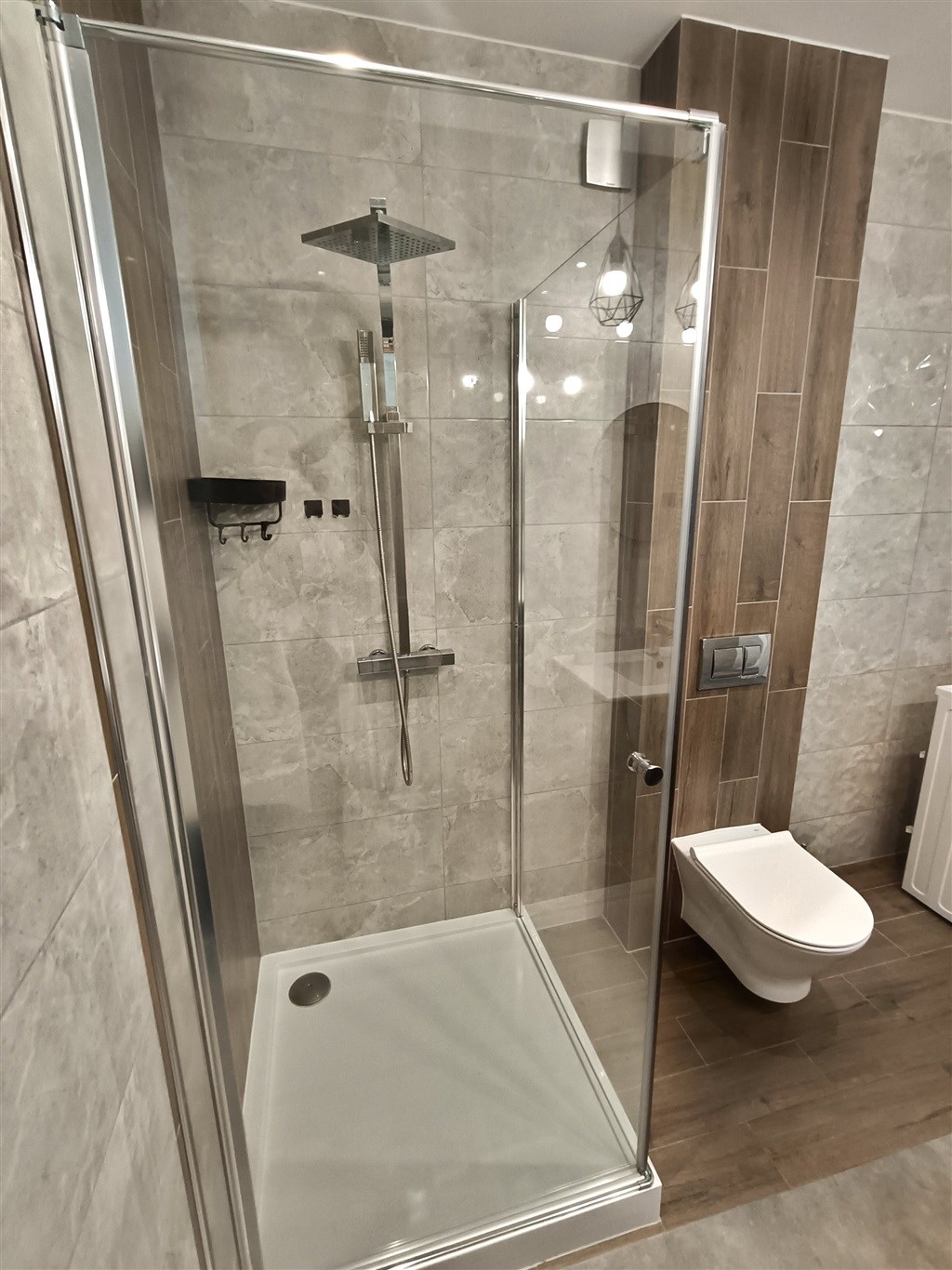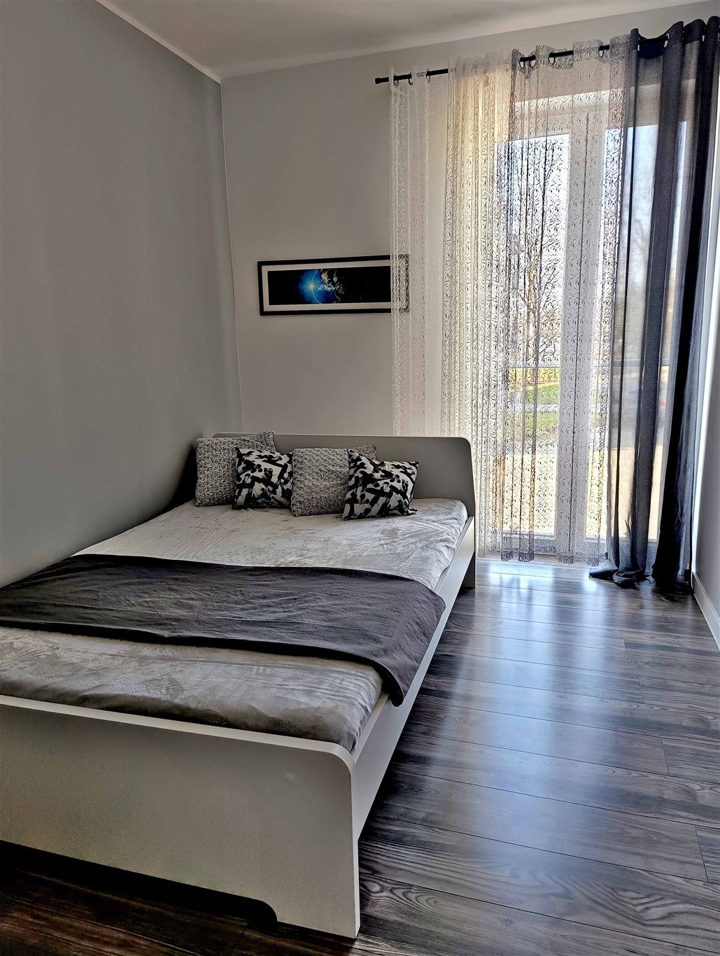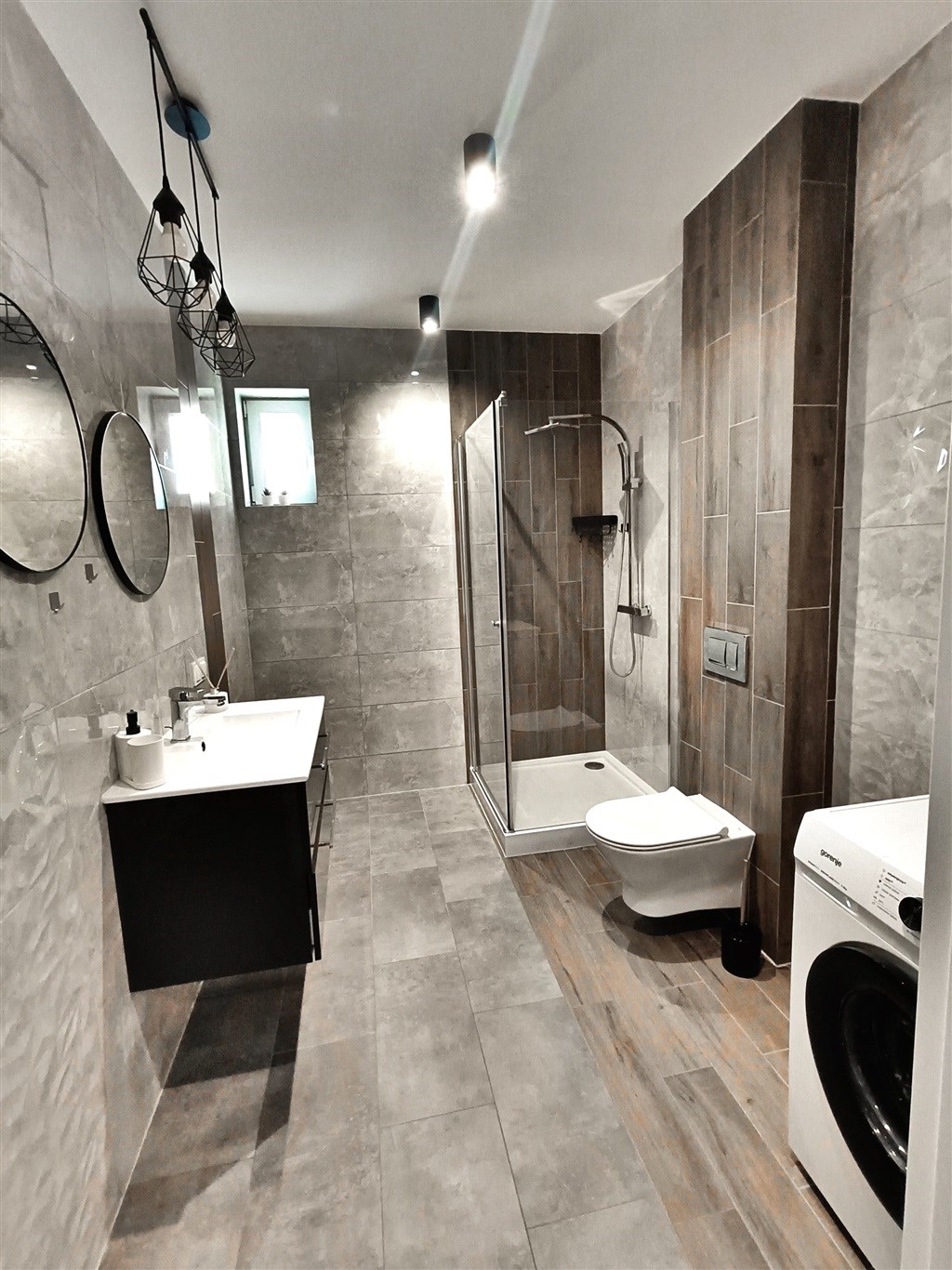 Mieszkanie w bardzo dobrym stanie. Kuchnia w pełni wyposażona w niezbędne sprzęty AGD (lodówka, piekarnik, płyta, zmywarka). Duża łazienka wykończona w wysokiej klasy glazurze, wyposażona w kabinę prysznicową oraz pralkę. Na podłogach w pokojach panele podłogowe o wysokiej klasie ścieralności. W salonie sofa, stolik kawowy oraz półka RTV i telewizor. W sypialni łóżko oraz komoda z szufladami. Garderoba wyposażona w system przechowywania (widoczny na zdjęciach). W przedpokoju pojemna szafa w zabudowie