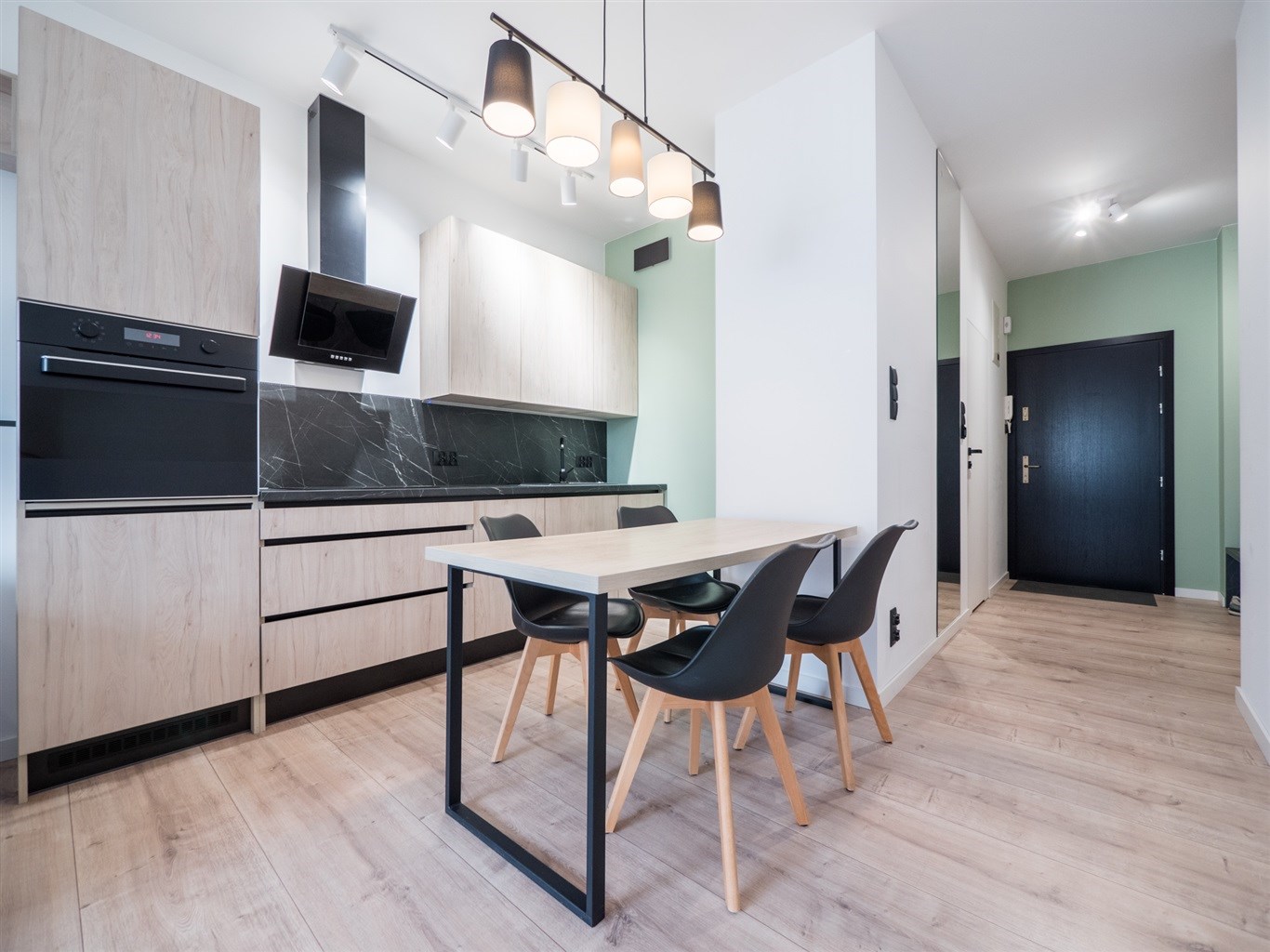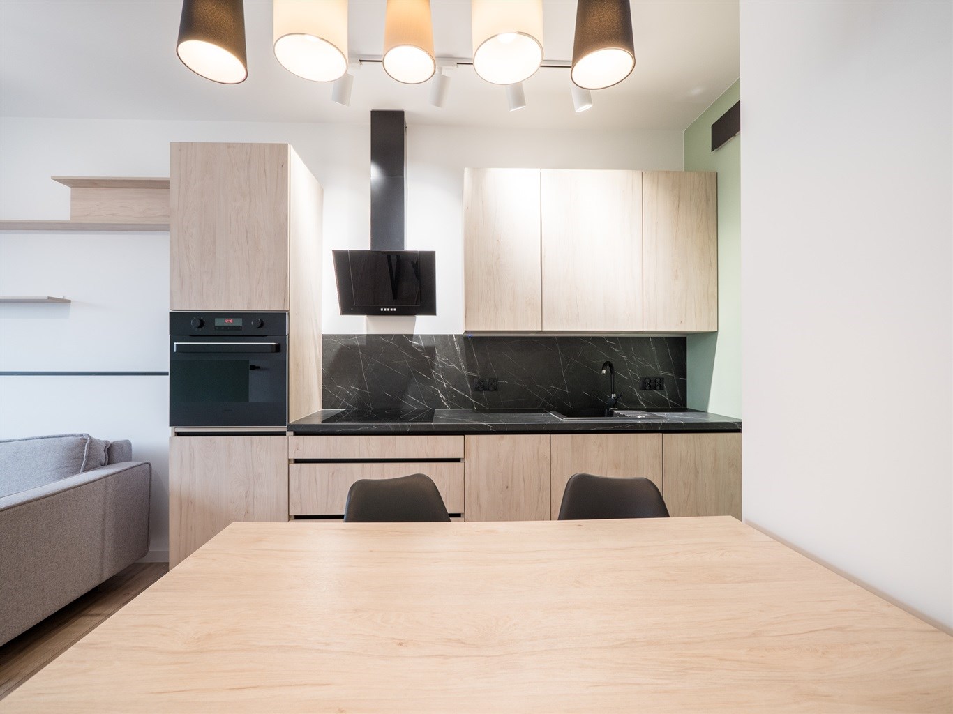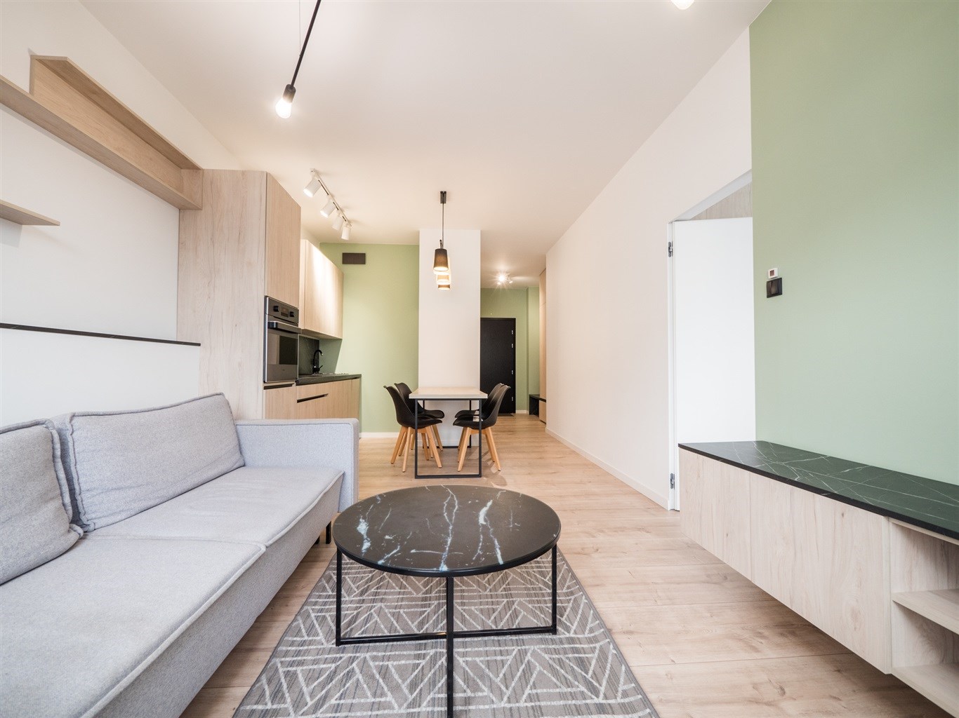 Mieszkanie w bardzo dobrym stanie. Kuchnia w pełni wyposażona we wszystkie niezbędne sprzęty AGD (lodówko-zamrażarka, piekarnik, płyta indukcyjna, zmywarka). W łazience wysokiej klasy glazura, kabina prysznicowa, pralka. Na podłogach w pokojach panele podłogowe o wysokiej klasie ścieralności. W salonie sofa z funkcją spania, stolik okolicznościowy oraz półka RTV. W sypialni łóżko wraz z szafą w zabudowie. W przedpokoju szafa w zabudowie.