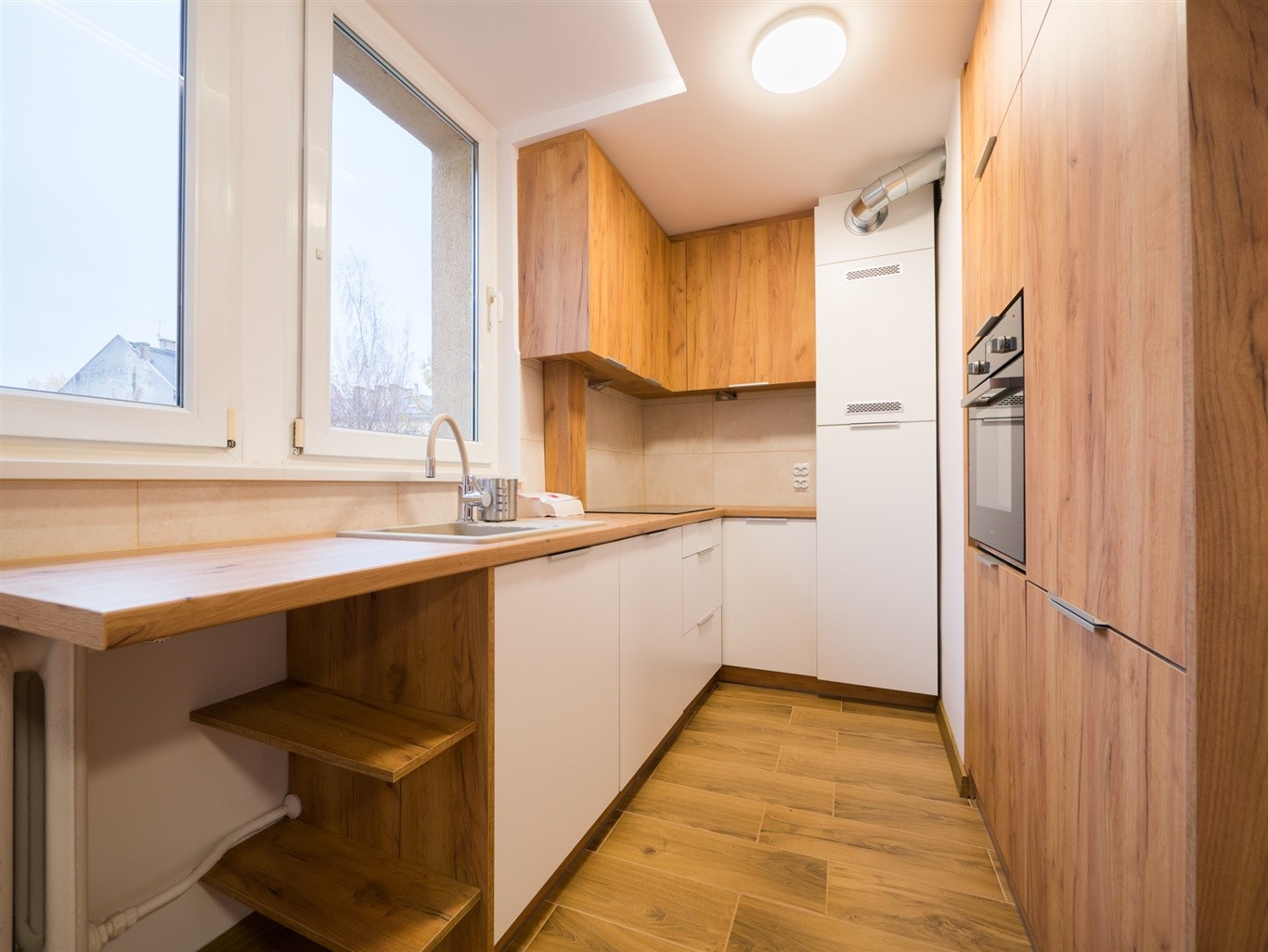 W mieszkaniu na nowo wykonano instalacje wodno-kanalizacyjną, elektryczną, gazową. Okna PCV we wszystkich pomieszczeniach. Nowa stolarka drzwiowa wewnętrzna, parapety. W pokojach na podłogach panele podłogowe o wysokiej klasy ścieralności. W oknach rolety.