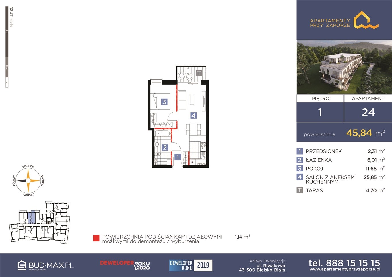 Oferujemy do sprzedaży 2-pokojowe mieszkanie zlokalizowane na nowo powstającym osiedlu w rejonie bielskiej Zapory.