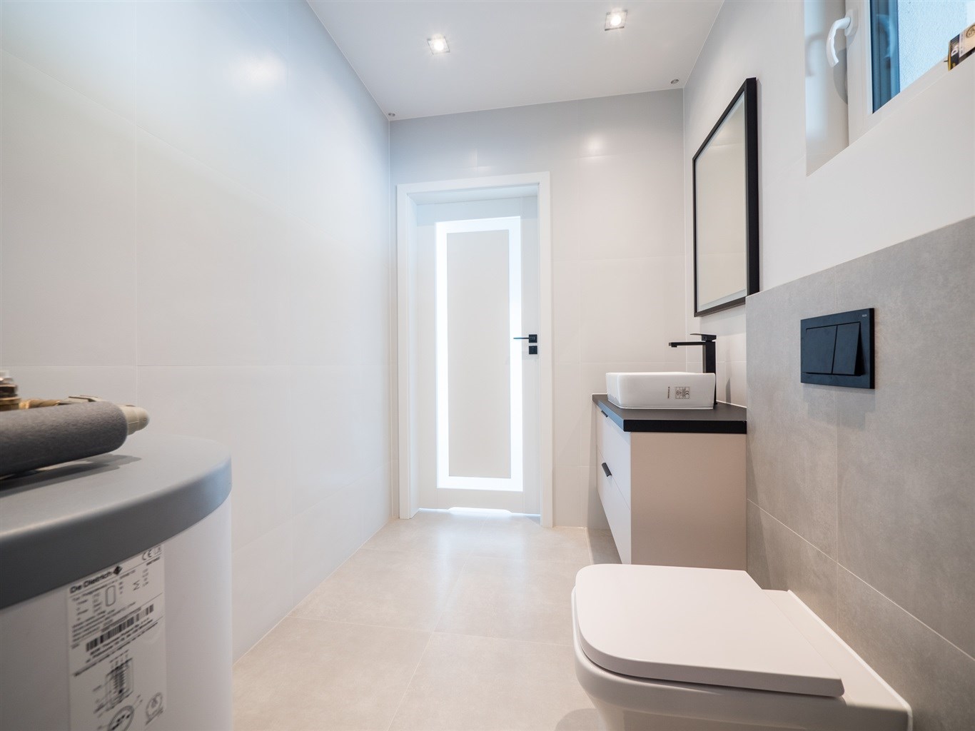 W całym budynku ogrzewanie podłogowe. W standardzie piec dwufunkcyjny. Stolarka okienna PCV trzyszybowa typu HS wraz z roletami.