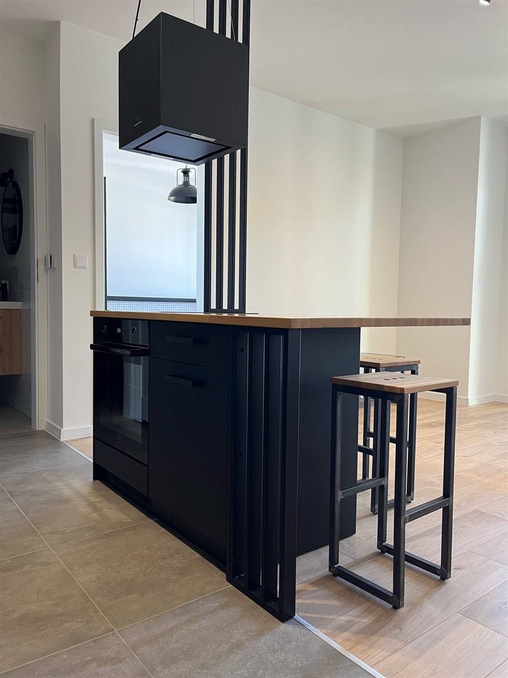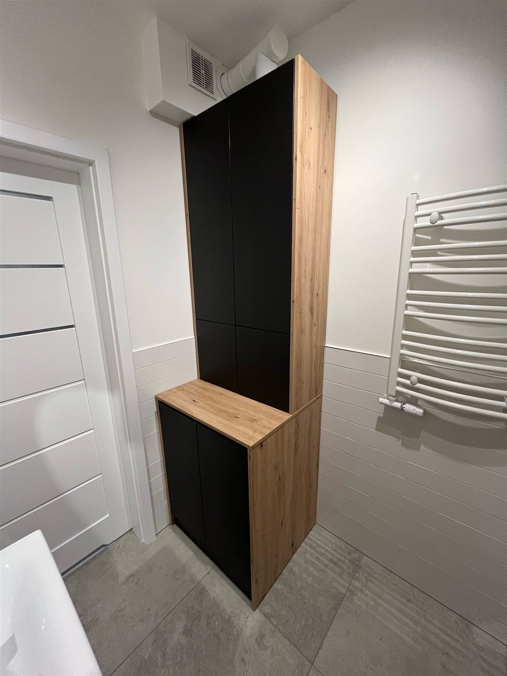 Aneks kuchenny w zabudowie wyposażony we wszystkie niezbędne sprzęty AGD (lodówka, zlew, płyta indukcyjna, zmywarka, piekarnik,) +”wyspa”. W łazience wysokiej klasy glazura, kabina prysznicowa, pralka oraz piec gazowy dwufunkcyjny.