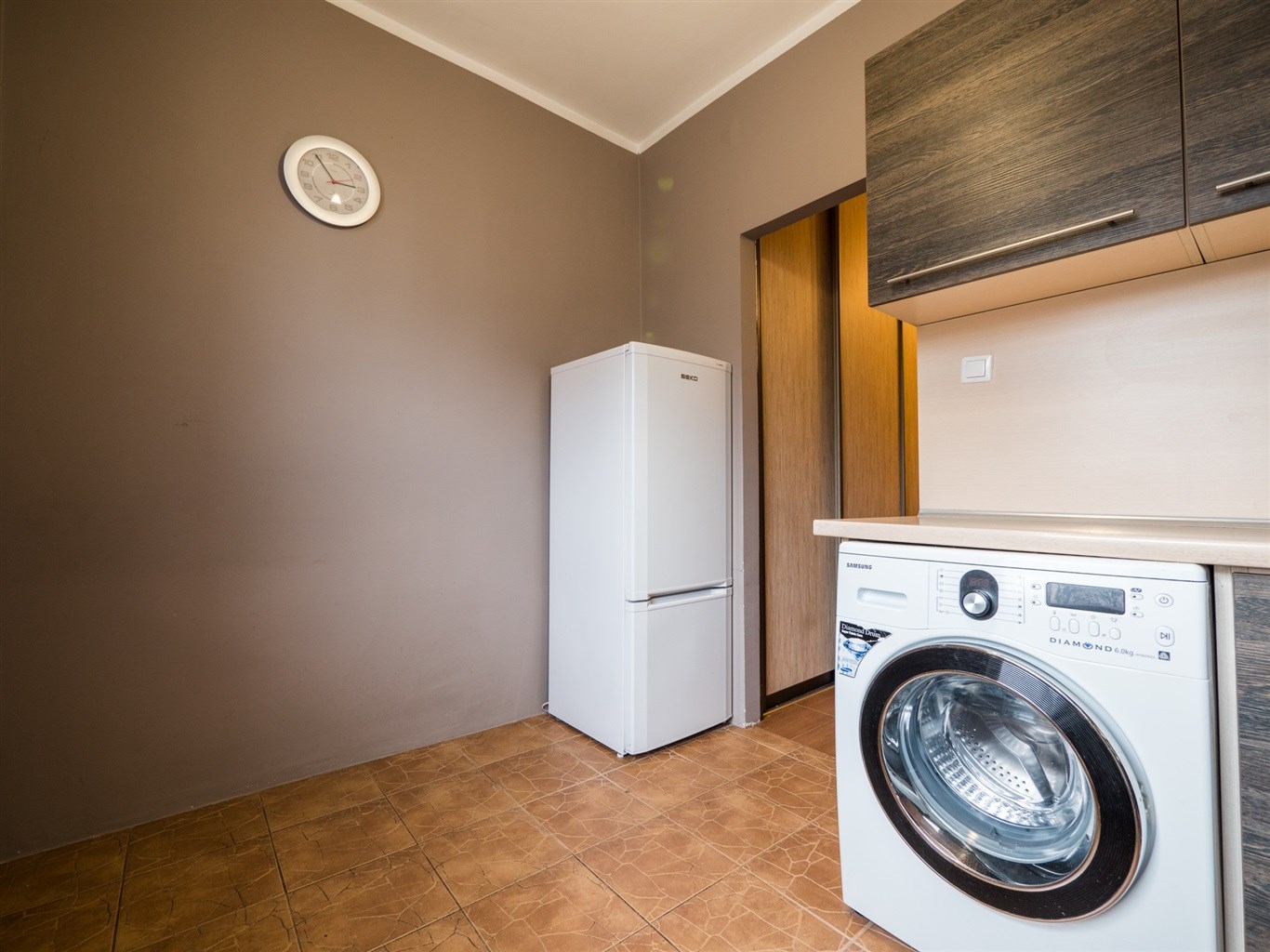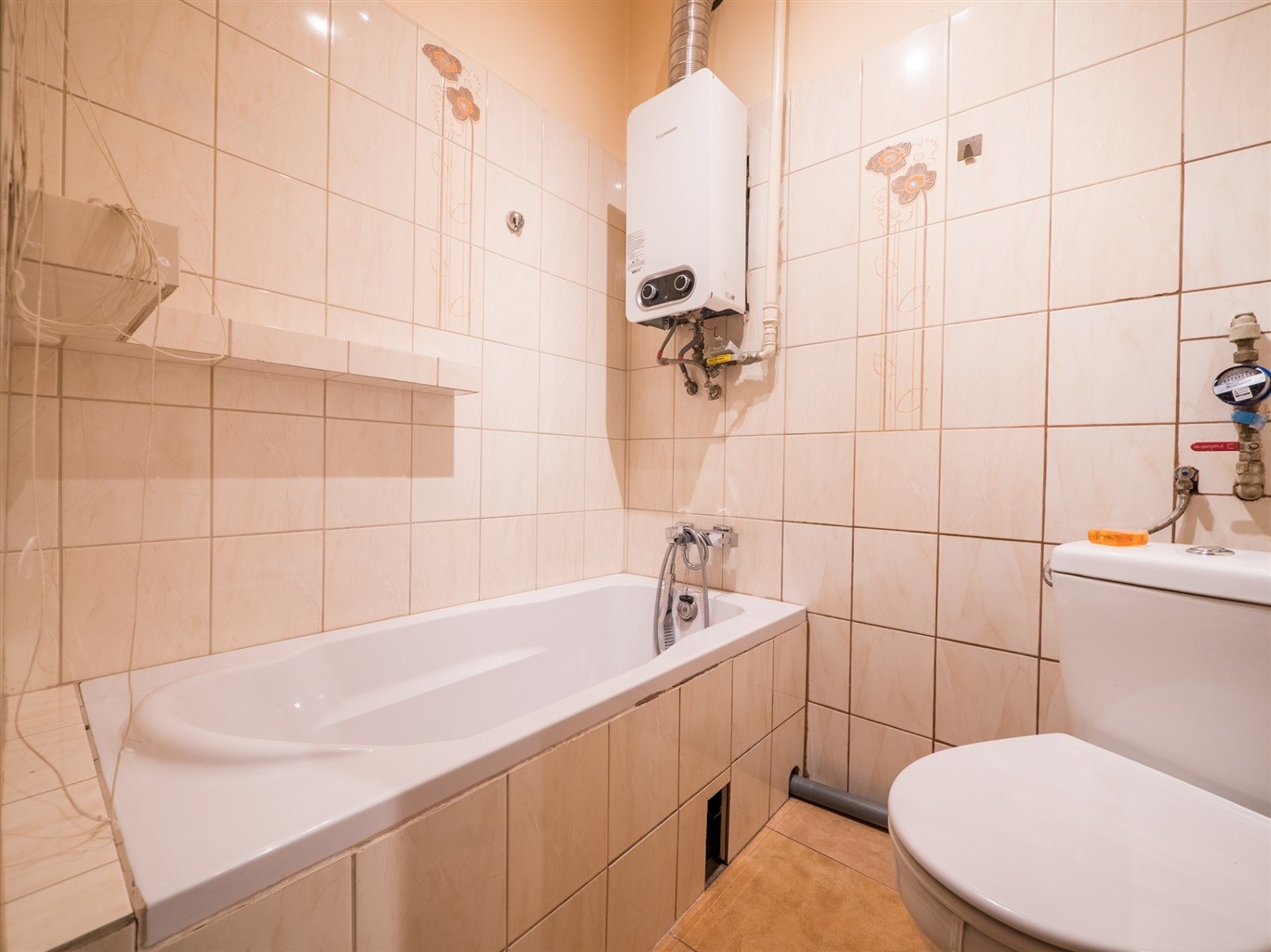 W łazience glazura, wanna. Na podłogach w pokoju parkiet. Kuchnia w zabudowie wyposażona we wszystkie niezbędne sprzęty AGD (lodówka, zlew, kuchenka, piekarnik, płyta).