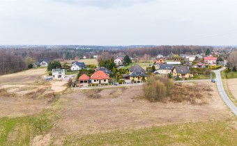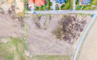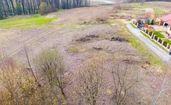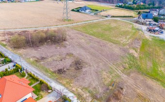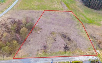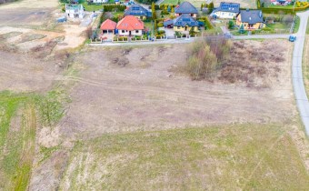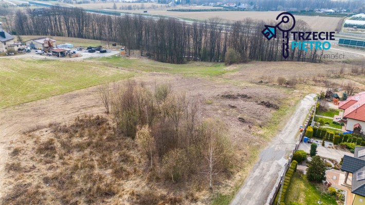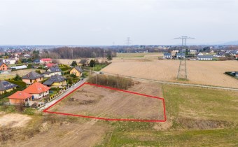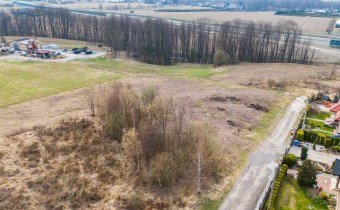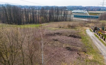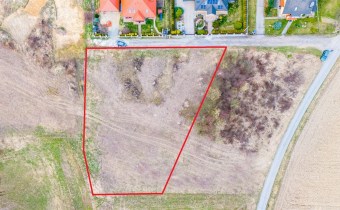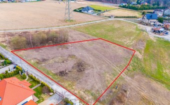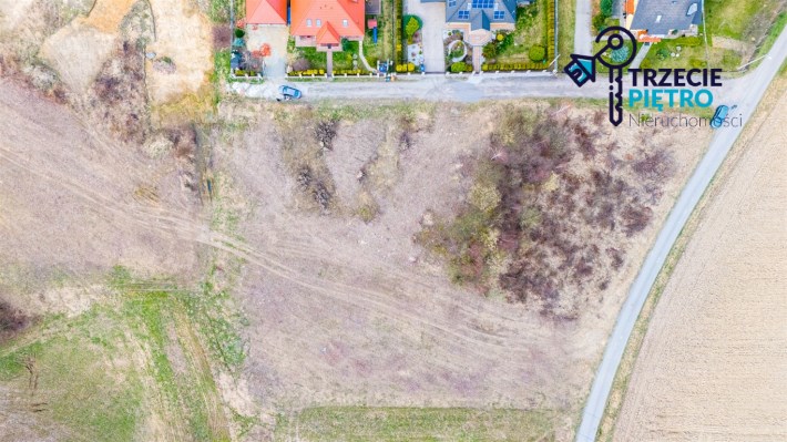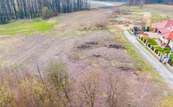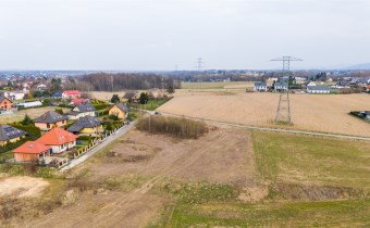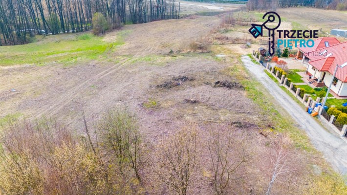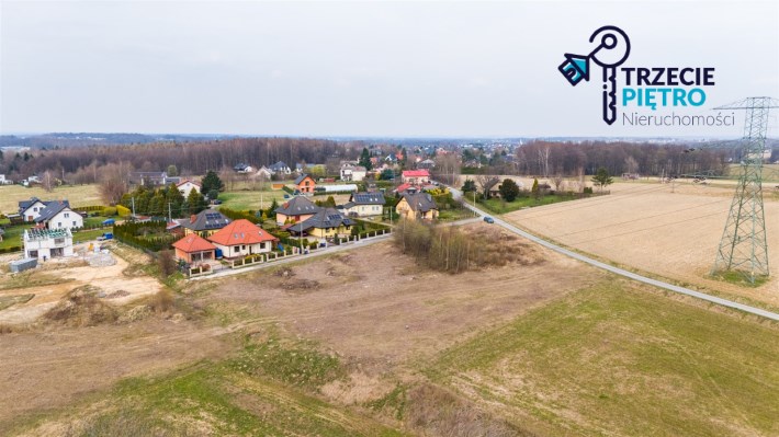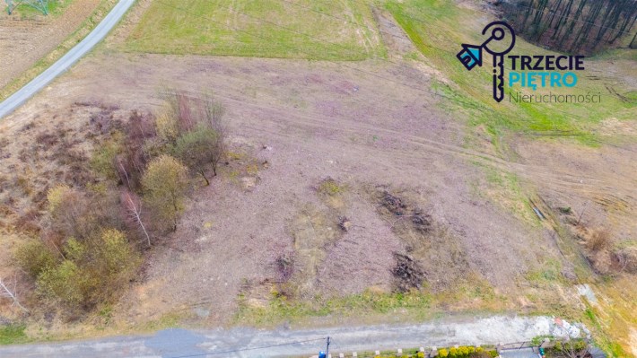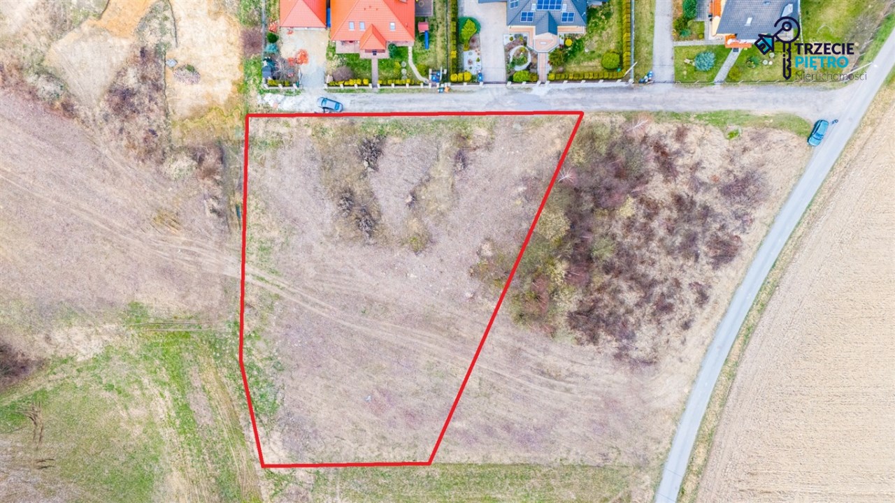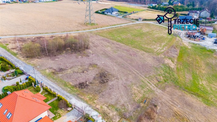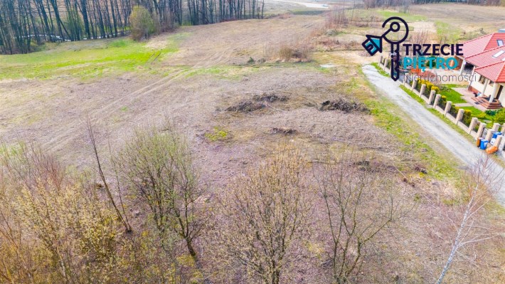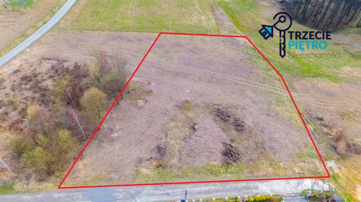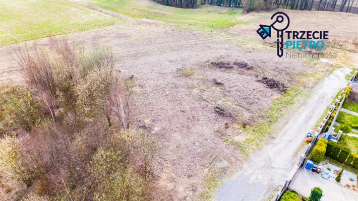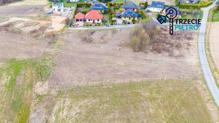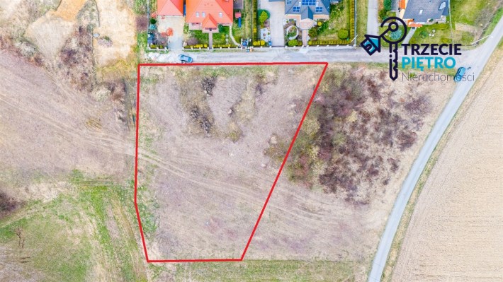 Działka w kształcie trapezu. Szerokość frontu ok 55m. Działka nie jest objęta planem zagospodarowania. Część działki budowlana (około 10arów) , część (około 13,5ara) oznaczona jako zieleń towarzysząca obiektom budowalnym (nad tą częścią linia wysokiego napięcia).