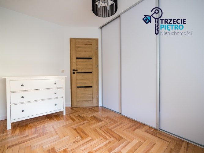 Mieszkanie po generalnym remoncie. Gładzie na ścianach oraz sufitach. Nowa stolarka drzwiowa wewnętrzna. Na podłogach w pokojach panele oraz parkiet. Widna kuchnia w zabudowie meblowej wyposażona w piekarnik, płytę czteropalnikową, zmywarkę oraz lodówkę. Ponadto spiżarka, którą można wykorzystać na powiększenie kuchni. Pokój kąpielowy w glazurze wyposażony w wannę oraz pralkę.