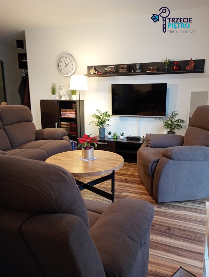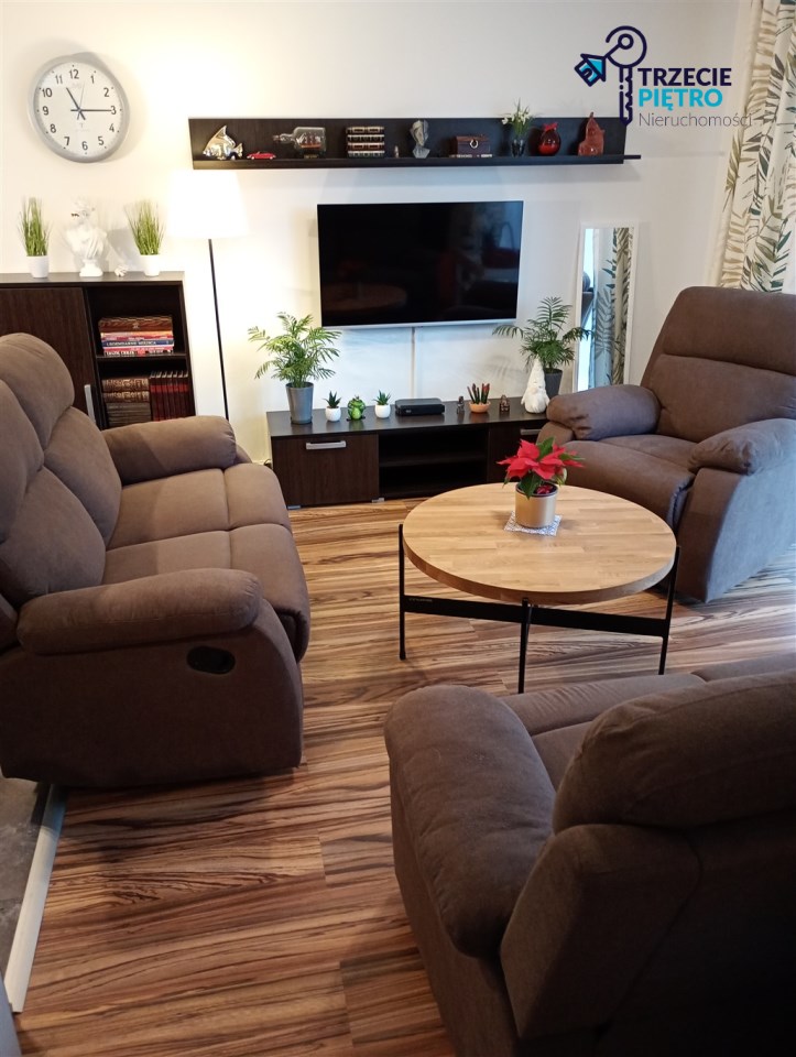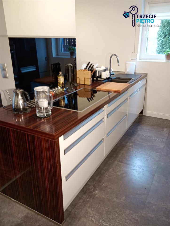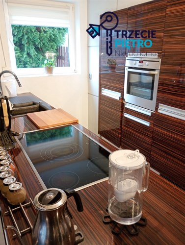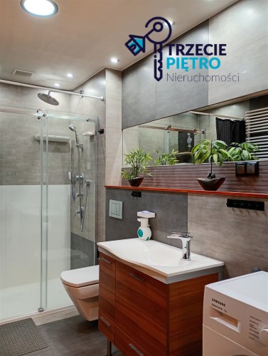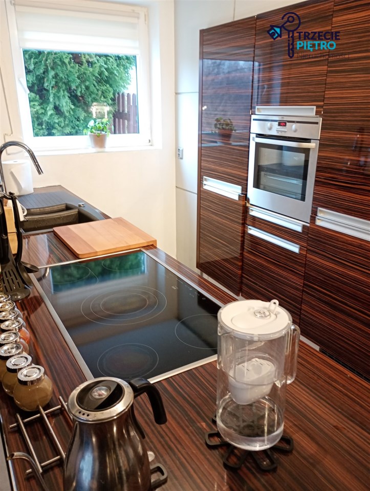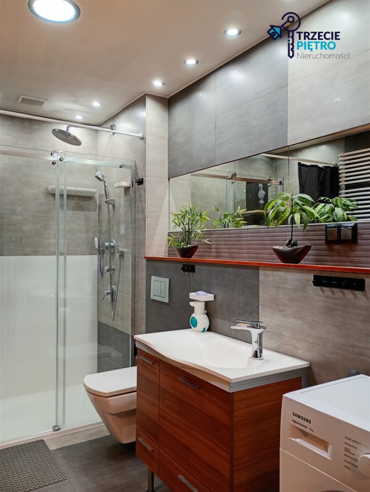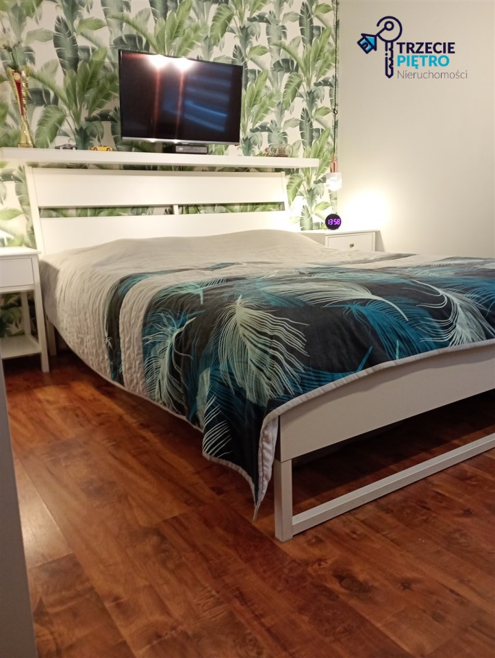 Mieszkanie w bardzo dobrym stanie. Kuchnia w pełni wyposażona w niezbędne sprzęty AGD. W łazience wysokiej klasy glazura, kabina prysznicowa. Na podłogach w pokojach panele podłogowe.