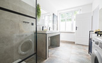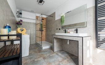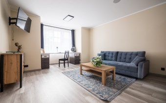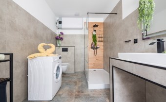 Duże łazienki wykończone w nowoczesnej glazurze, wyposażone w kabinę prysznicową oraz pralkę. W pokojach łóżka z funkcją spania, pojemna szafa oraz biurko.