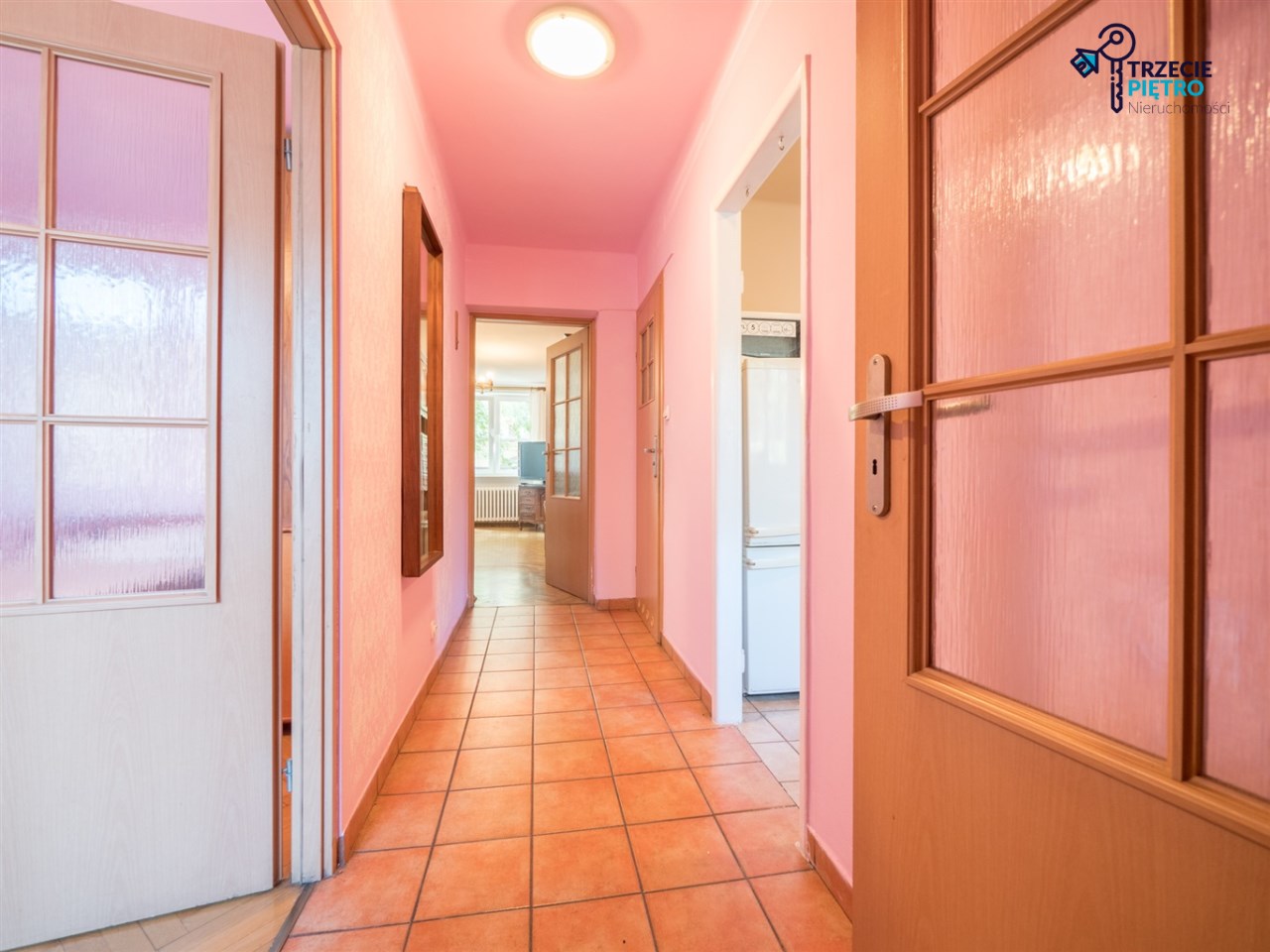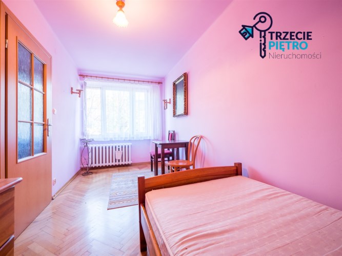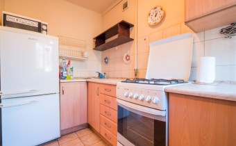 W łazience glazura, kabina prysznicowa, pralka. Na podłogach w pokojach parkiet. Kuchnia w zabudowie wyposażona we wszystkie niezbędne sprzęty AGD (lodówka, zlew, piekarnik, kuchenka)