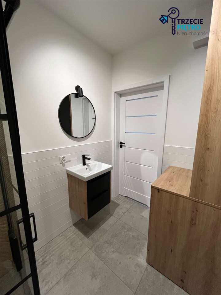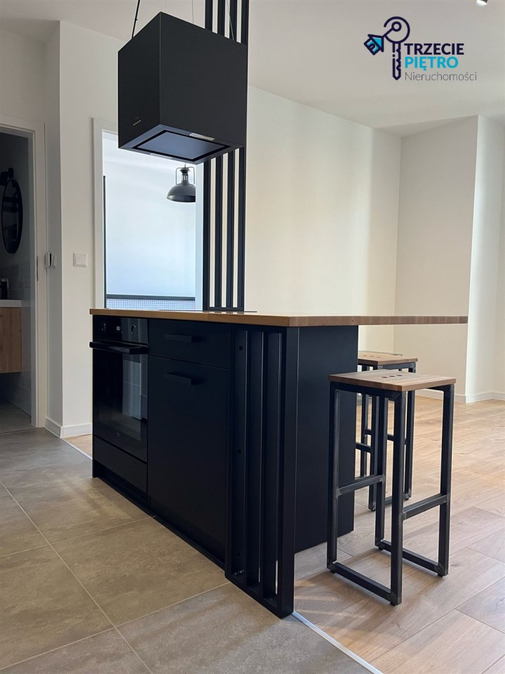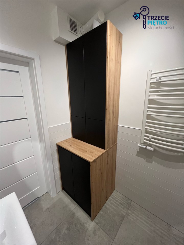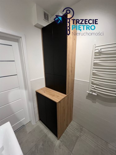 Aneks kuchenny w zabudowie wyposażony we wszystkie niezbędne sprzęty AGD (lodówka, zlew, płyta indukcyjna, zmywarka, piekarnik,) +"wyspa". W łazience wysokiej klasy glazura, kabina prysznicowa, pralka oraz piec gazowy dwufunkcyjny.