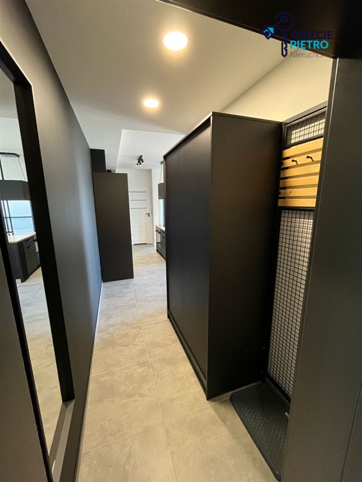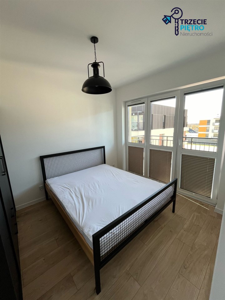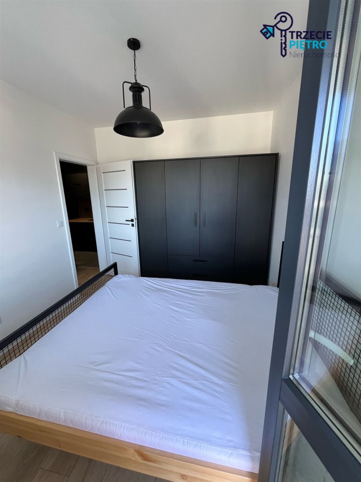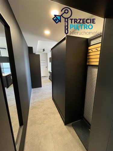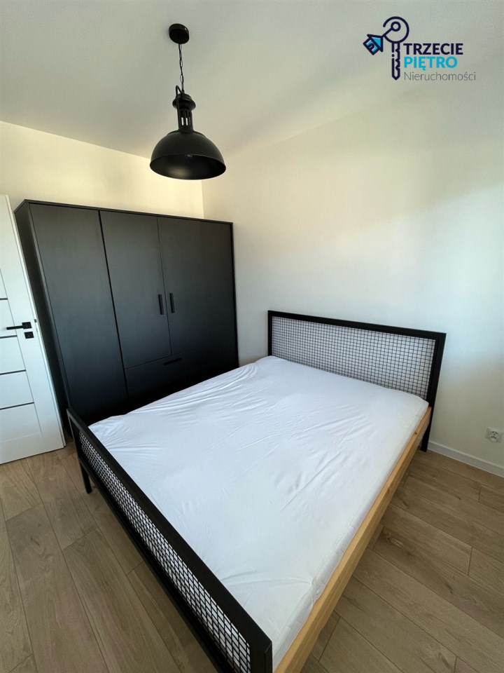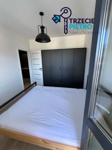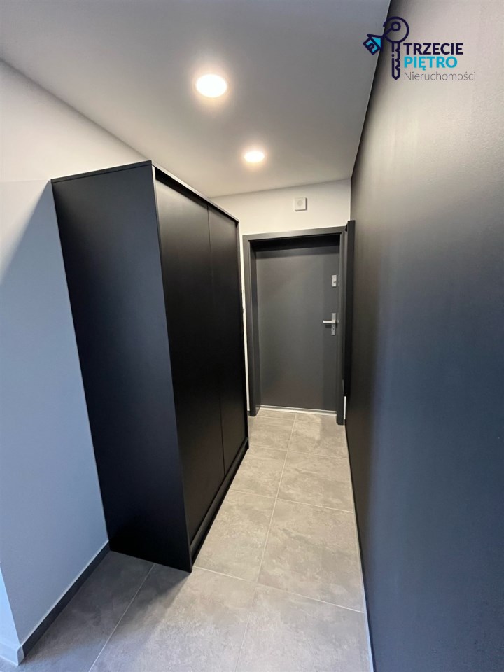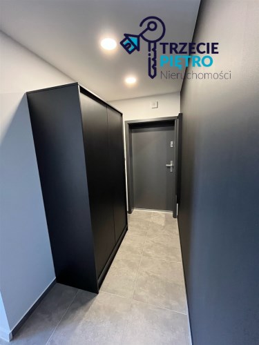 Salon wyposażony w nowoczesną sofę z funkcją spania stolik okolicznościowy oraz półkę RTV. Sypialnia wyposażona w łóżko oraz szafę. W przedpokoju dwie duże szafy.