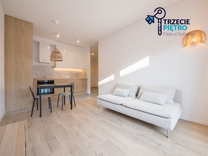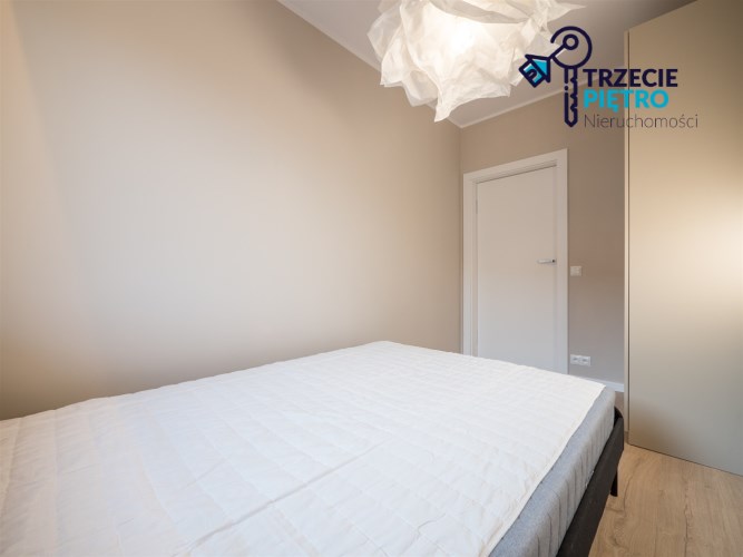 W Salonie wygodna sofa, półka RTV oraz stolik z dwoma krzesłami. W sypialni łóżko z materacem oraz funkcjonalna szafa.