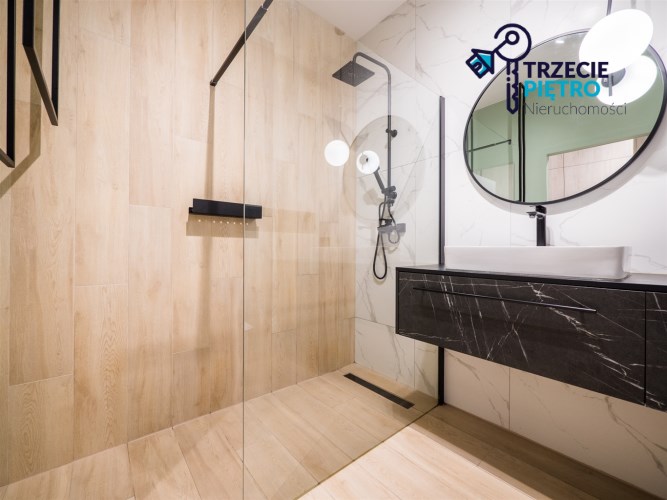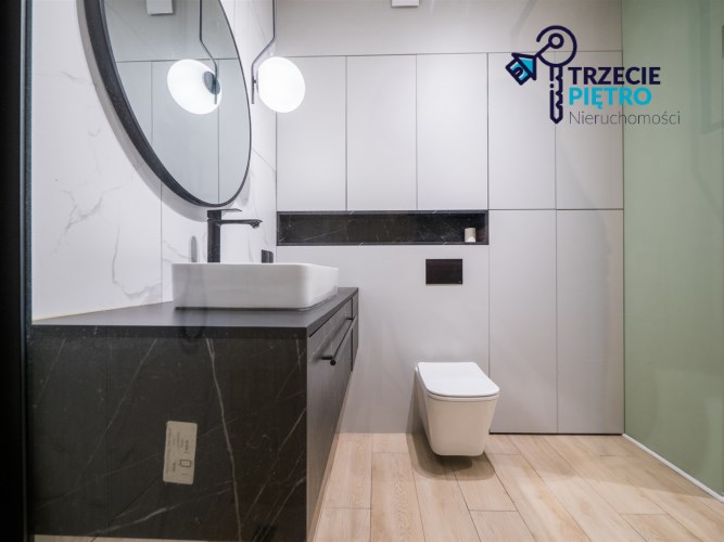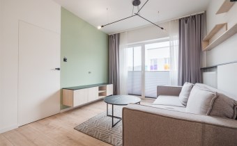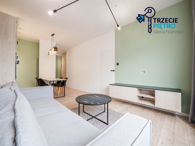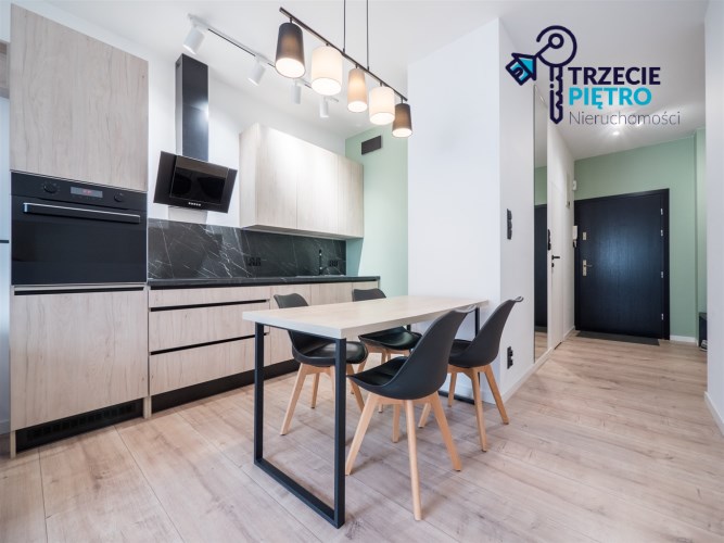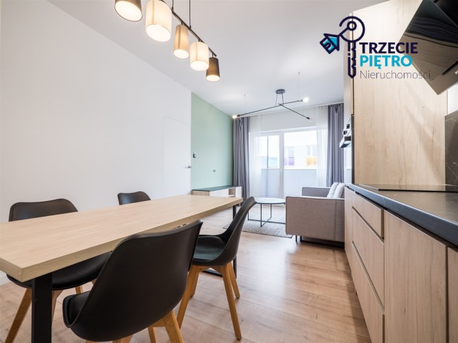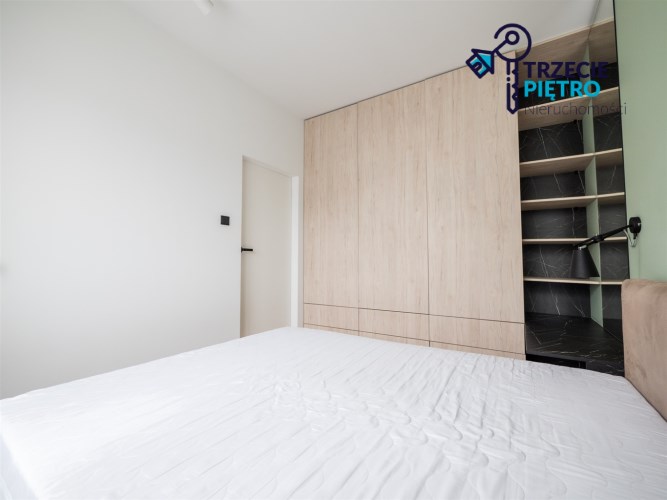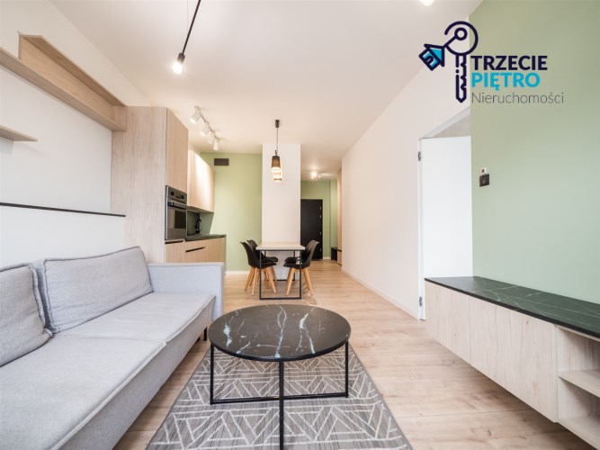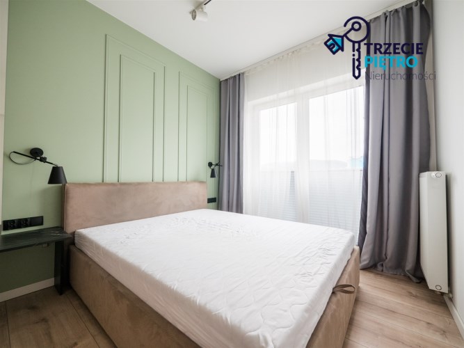 Mieszkanie w bardzo dobrym stanie. Kuchnia w pełni wyposażona we wszystkie niezbędne sprzęty AGD (lodówko-zamrażarka, piekarnik, płyta indukcyjna, zmywarka). W łazience wysokiej klasy glazura, kabina prysznicowa, pralka. Na podłogach w pokojach panele podłogowe o wysokiej klasie ścieralności. W salonie sofa z funkcją spania, stolik okolicznościowy oraz półka RTV. W sypialni łóżko wraz z szafą w zabudowie. W przedpokoju szafa w zabudowie.