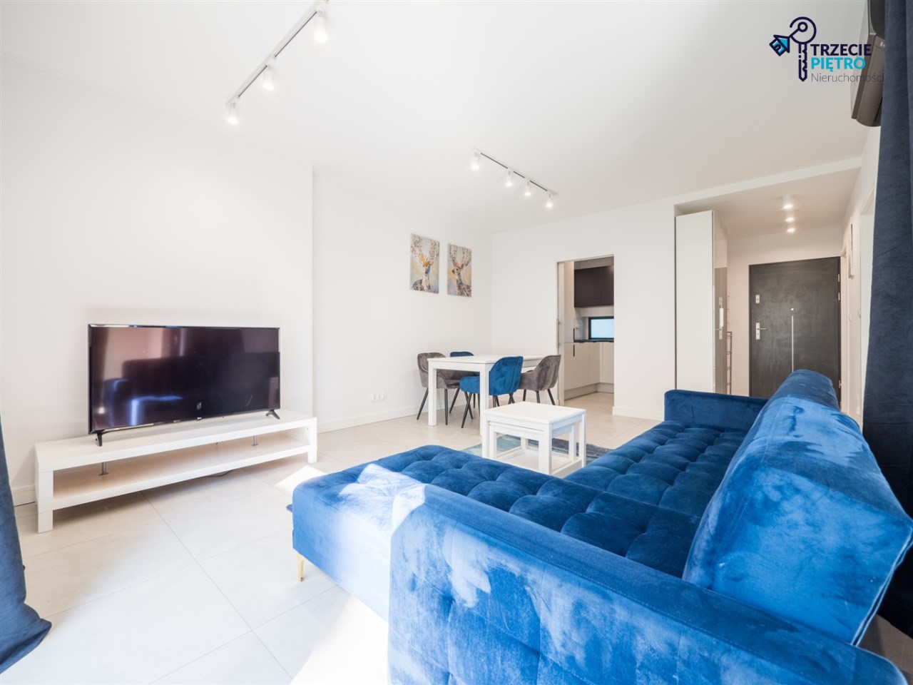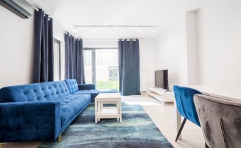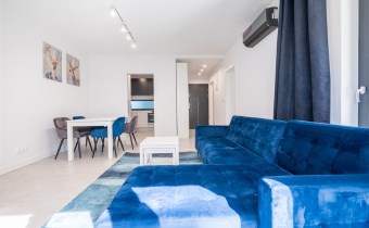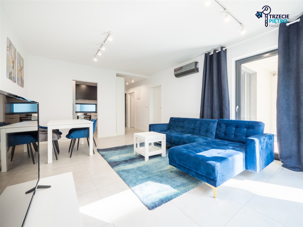 Mieszkanie wyposażone w klimatyzację (salon + sypialnia.) Całość wyposażenia widocznego na zdjęciach pozostaje w mieszkaniu. W całym apartamencie zastosowane energooszczędne oświetlenie LED.