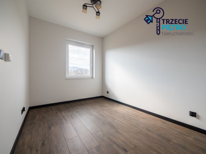 W salonie sofa z funkcją spania. W pokoju miejsce na łóżko małżeńskie i szafę lub duża przestrzeń na gabinet lub pokój dla dziecka.