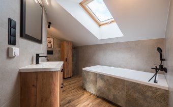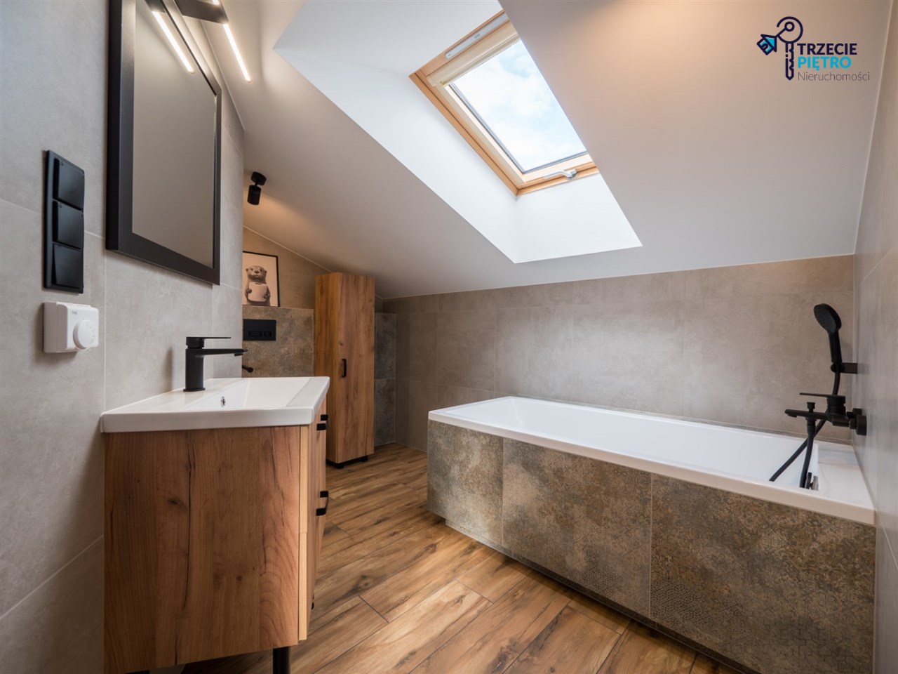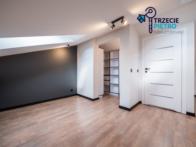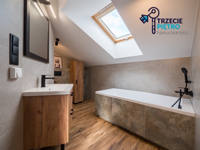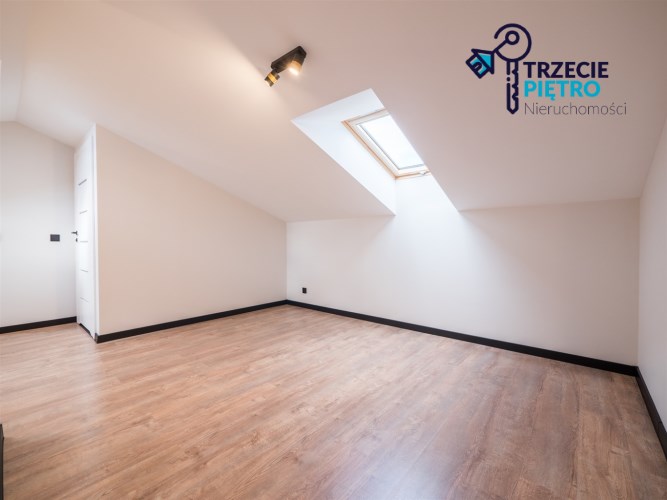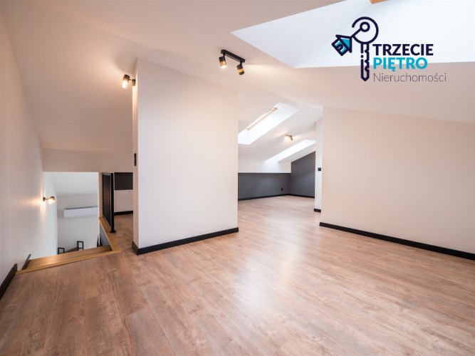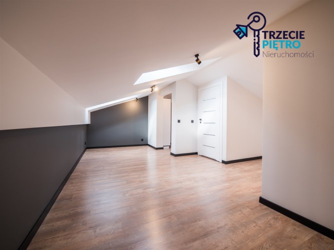 Na piętrze open space do własnej aranżacji , funkcjonalna garderoba oraz łazienka z wanną.
